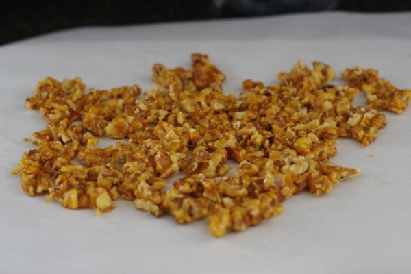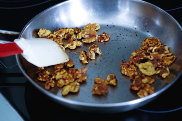 3. Coarsely chop caramelized walnuts, set aside.