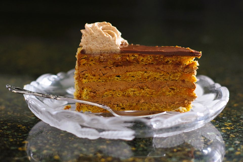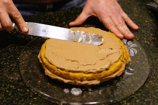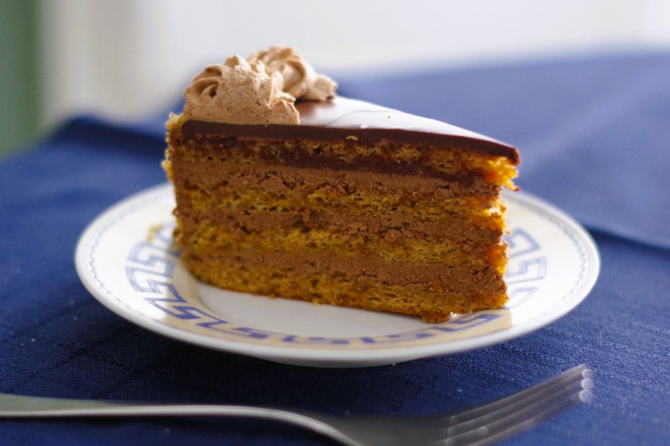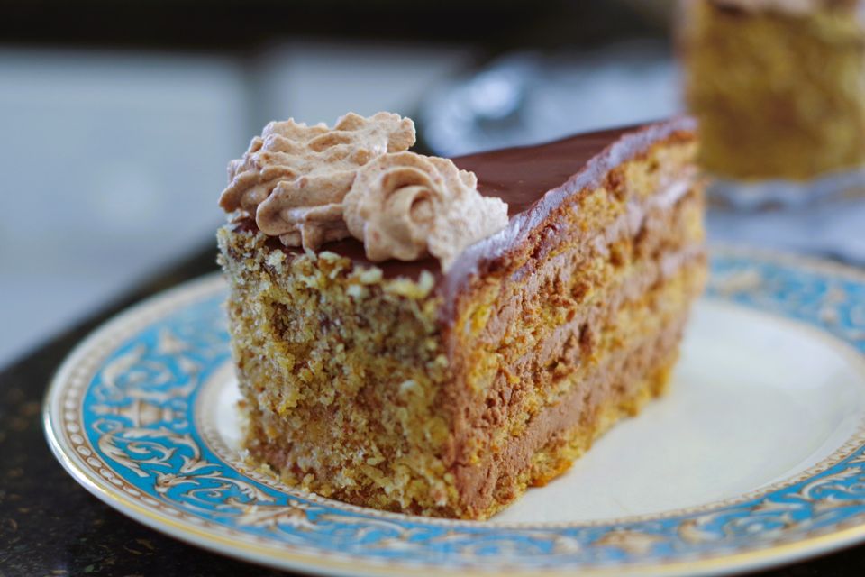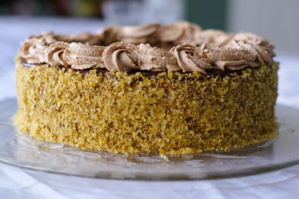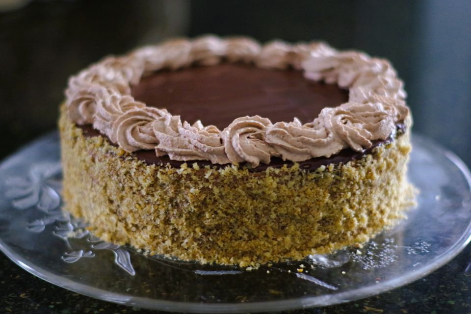 My recovery plan was just to sprinkle grilijas, ground caramelized walnuts, over the top of chocolate buttercream layers. It turned out so good, everybody liked it! So much so that for this year’s Christmas my daughter asked me if I could bake it again!