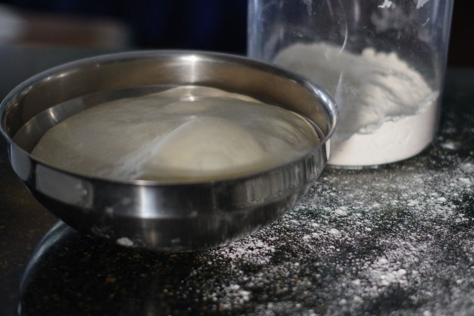 - 1:00 pm Add all ingredients to a medium size mixing bowl. Use plastic scraper to incorporate everything together into a shaggy dough. Scrape the dough out onto to a kitchen counter and knead for 5-8 minutes or until it starts become elastic and shiny. Cover and set aside, keep at 20 ºC (68ºF).